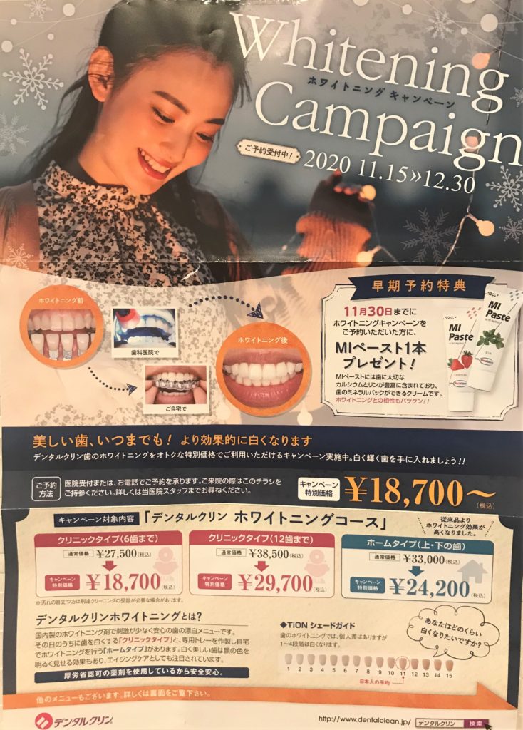 BLOG ブログ HOMEブログ新着情報ホワイトニングキャンペーン早期予約特典プレゼント!! 2020.10.27 お知らせ ブログ 新着情報 ホワイトニングキャンペーン早期予約特典プレゼント!! 冬のホワイトニングキャンペーン!!受付開始です!! 毎年、年末に駆け込みでホワイトニングをされる方も この期間なら早期予約特典プレゼント付き! 新年を、白く輝く歯で迎えたいですね 前の記事へ 記事一覧 次の記事へ