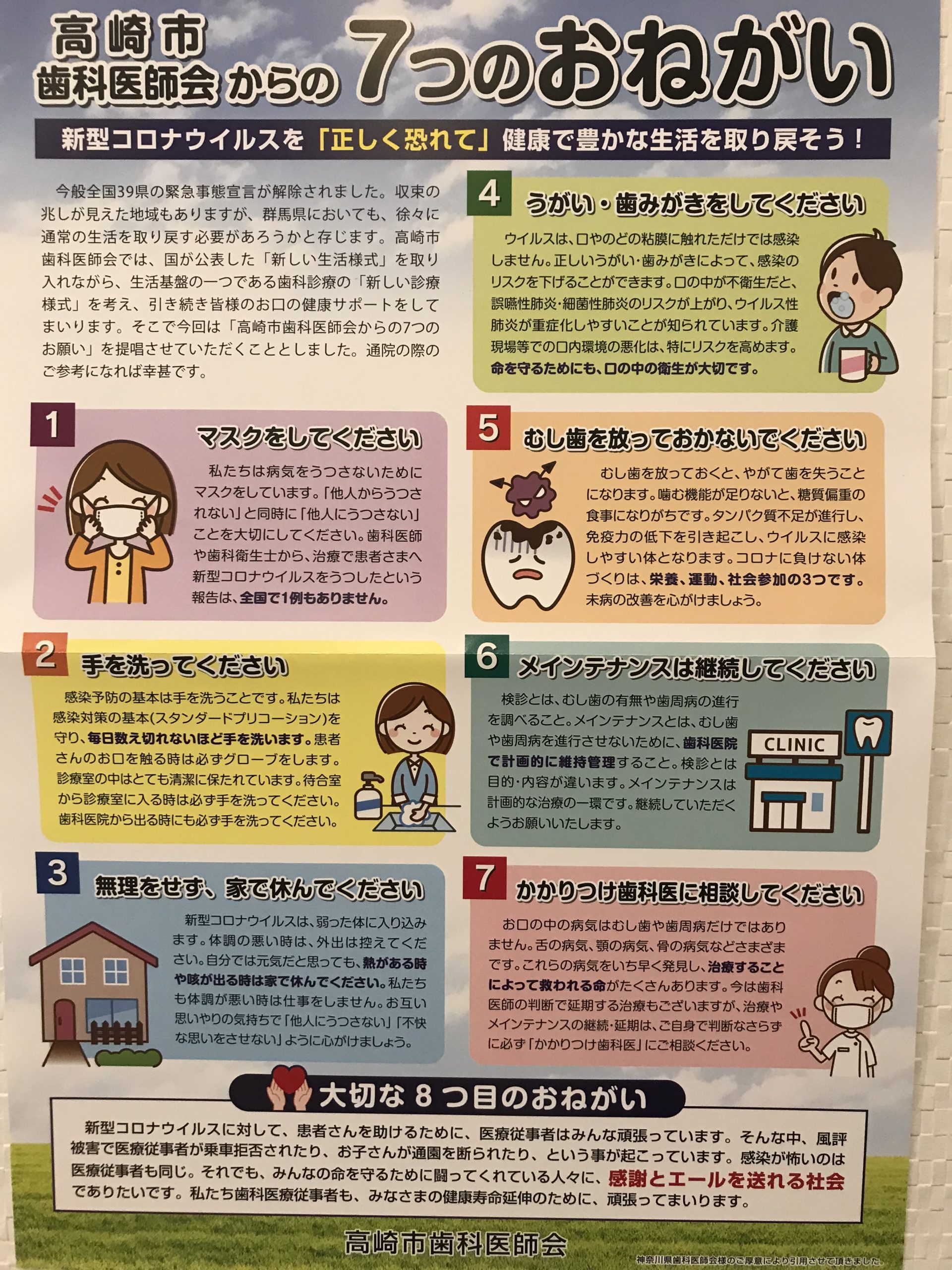 BLOG ブログ HOMEブログお知らせ 2020.10.17 新着情報 10月23(金)院内ミーティングの為、午後の診療開始は3時30分からになります 2020.10.02 新着情報 新型コロナウイルス7つのおねがい 2020.09.28 新着情報 10月7日(水)院内研修の為午前中休診 2020.09.25 新着情報 ブラッシングで美白!! 2020.09.15 新着情報 特典プレゼント届きました!! 2020.09.15 新着情報 9月30日(水)院内ミーティングの為、午後の診療開始は3時30分からになります 2020.09.11 新着情報 歯垢の除去でウイルス感染を減らそう! 2020.09.11 新着情報 ご予約受付開始!秋のキャンペーン!! 2020.09.07 新着情報 ミニボトル!! 『薬用』オーラルステリ 2020.09.04 新着情報 9月8日 院内研修の為 午前中休診 «‹567›